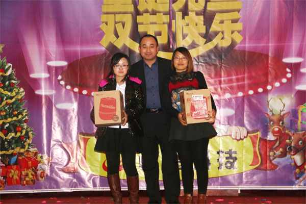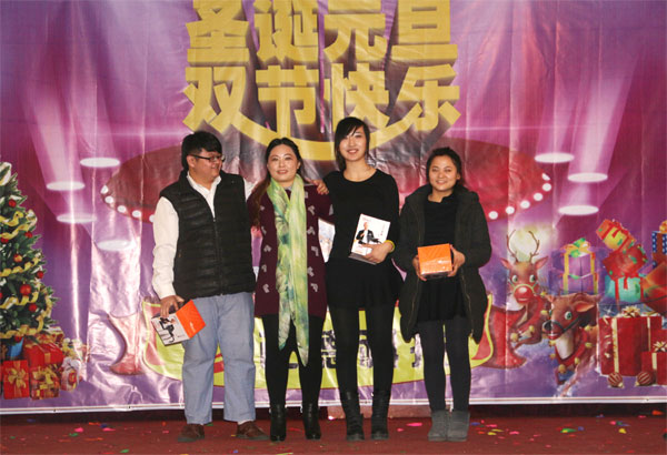 馬副總(左二)為三等獎得主劉強(左一)、孔霞(左三)、單雙霞(右)頒獎